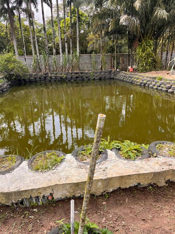 Galpão no terreno e tanques de criação de tilápias