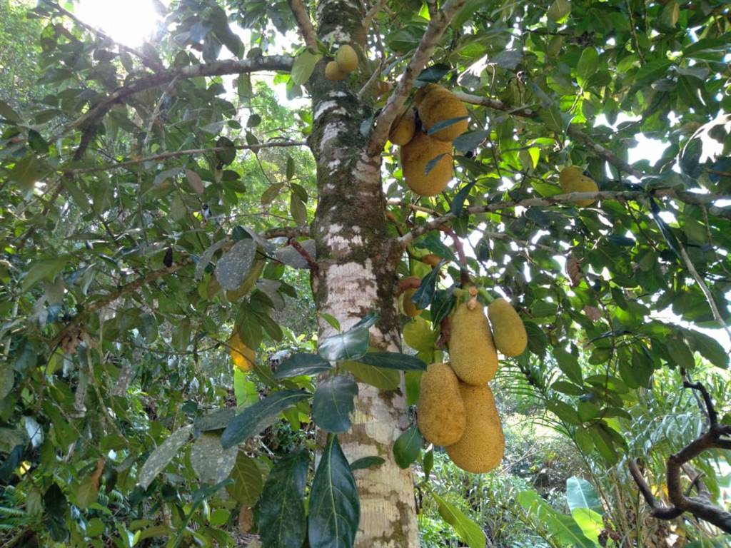 Vários pés de frutas como: mamão, lixia, seriguela, coco verde, acerola, banana, limão, laranja, carambola, romã, abacate, abacaxi, jambo, cereja.